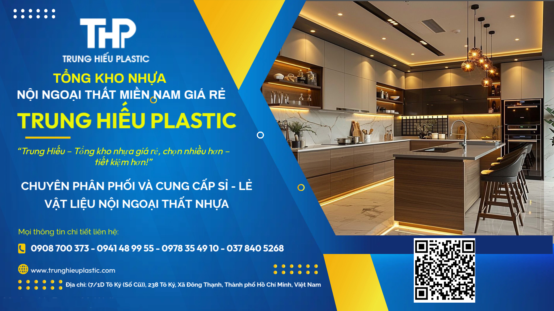 Công ty Trung Hiếu Plastic là đơn vị chuyên cung cấp và phân phối các sản phẩm vật liệu xây dựng nhựa cao cấp, đáp ứng nhu cầu thi công nội thất và trang trí hiện đại như PVC Vân đá, Tấm hậu tủ PVC, Tấm Nano, Lam sóng… Các mặt hàng Nhựa nội, ngoại thất và phụ kiện phục vụ ngành Nhựa.